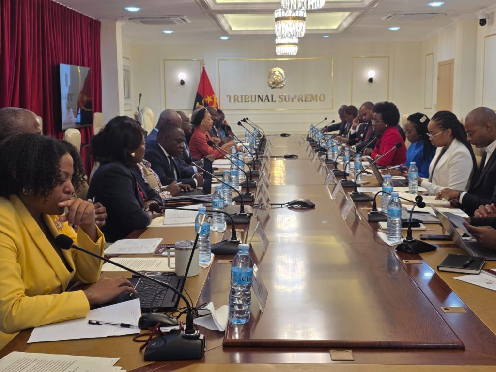 O Presidente do Tribunal Supremo e do Conselho Superior da Magistratura Judicial, Dr. Norberto Sodré João e a Ministra das Finanças, Vera Daves de Sousa reuniram-se na manhã desta terça-feira, 21, com foco no incremento da cooperação institucional. O encontro que decorreu na sala do Plenário do Tribunal Supremo, serviu para o alinhamento de temas como a Adequação Orçamental e Racionalização Financeira, tendo a necessidade de celeridade na homologação das ordens de saque dos Tribunais de Comarca e a disponibilização de instalações para os Serviços de Inspecção Judicial como pontos de destaque; Planeamento e Sustentabilidade dos Recursos Humanos e Harmonização de Subsídios. Pela magistratura Judicial, participaram o Venerando Juiz Conselheiro, Dr. Domingos Mesquita, a Veneranda Juíza Conselheira, Dra. Teresa Marçal, o Secretário Executivo do CSMJ, Dr. João Paulo de Morais, o Secretário-Geral do Tribunal Supremo, Dr. Luís Doukuy de Castro, bem como Directores e Chefes de Departamento de distintas áreas do Tribunal Supremo e do Conselho Superior da Magistratura Judicial. A delegação do Ministério das Finanças contou com o Presidente do Conselho de Administração da AGT, Dr. José Leiria, Director Nacional do Orçamento do Estado (DNOE), Dr. Edilásio Caleia, Director Nacional do Tesouro (DNT), Dr. Marlon Lima, Directora Nacional do Património do Estado (DNPE), Dra. Ludmila Dange, Representante do SETIC FP, Eng. Edilson Coelho. Representante do GRH, Dr. Hermenegildo Kossi, e do Representante do SNCP, Dr. Osvaldo Ngolowime.